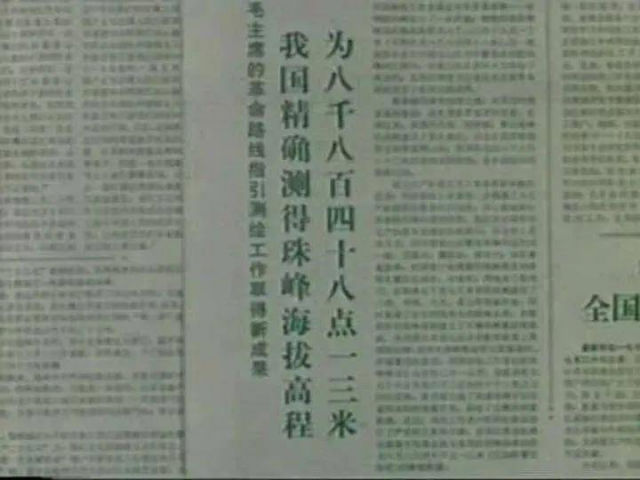 1975年7月23日,中国政府授权新华社向全球宣布:中国测绘工作者精确测得世界最高峰珠穆朗玛峰的海拔高程为8848.13米。