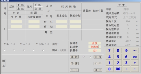 (2) 具有仪器操作读数、路线测记训练和路线测记平差考核三种模式;